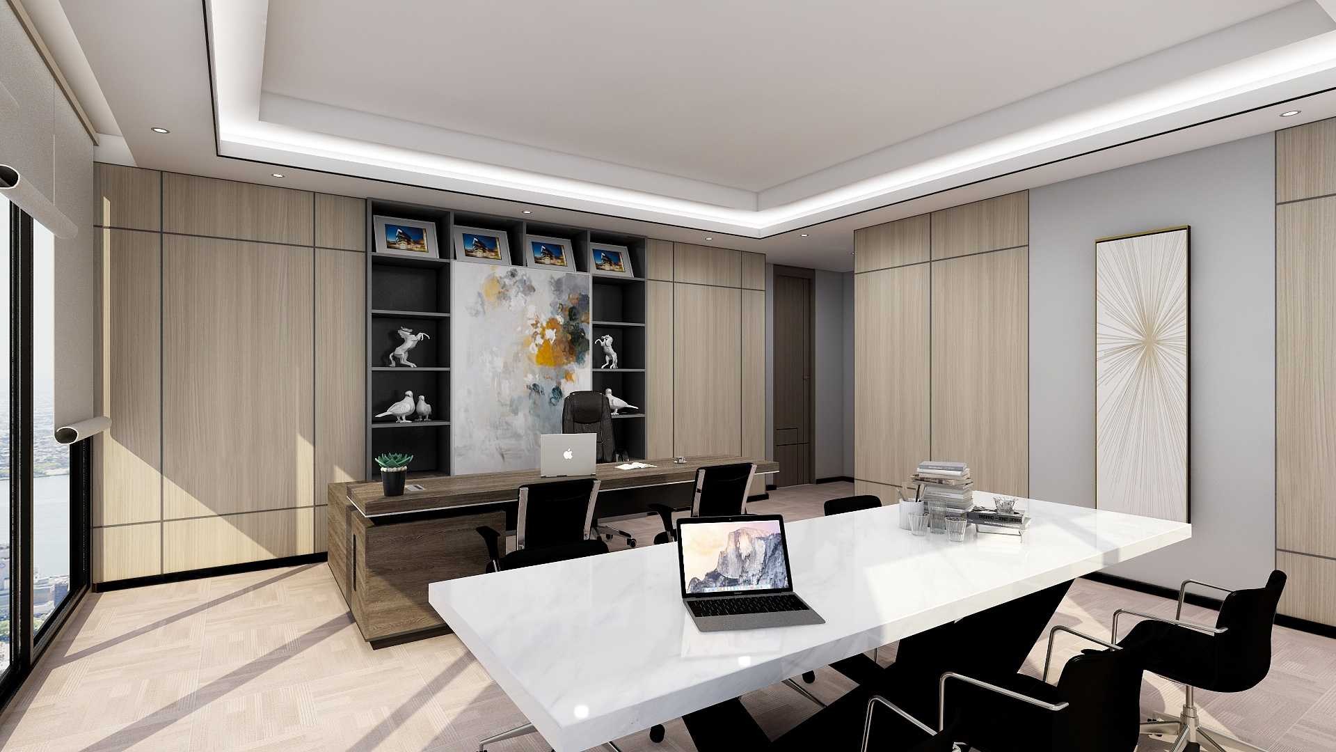 深色系色彩在一些特定區(qū)域可以營造出私密、莊重的氛圍。例如,領(lǐng)導(dǎo)辦公室可以采用深色木材和暗色調(diào)的軟裝搭配,展現(xiàn)穩(wěn)重和權(quán)威感。